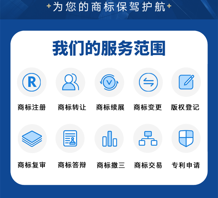 亿佰倍商标注册公司是国家知识产权局商标局备案、中国版权保护中心备案的一家专业知识产权代理服务机构,主要业务包括:知识产权代理(专利);为中外客户提供国内商标代理、国际商标代理、著作权代理及其他知识产权保护代理服务;代理商标评审、异议、答辩、转让、变更、撤销等案件;商标设计;商标交易;商标评估;知识产权方面的法律咨询、商标注册流程及费用的效果法律事务服务等。